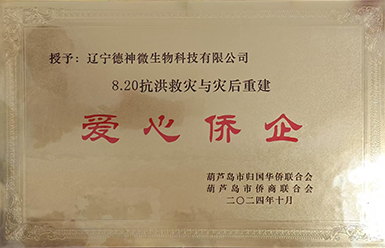 遼寧德神微生物科技有限公司被授予愛心僑企